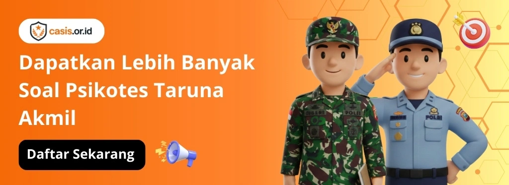 Artikel ini menghadirkan 100 soal Psikotes Taruna Akmil lengkap dengan pembahasan, yang akan membantu kamu berlatih dan meningkatkan kemampuan agar lebih siap menghadapi tes sesungguhnya.